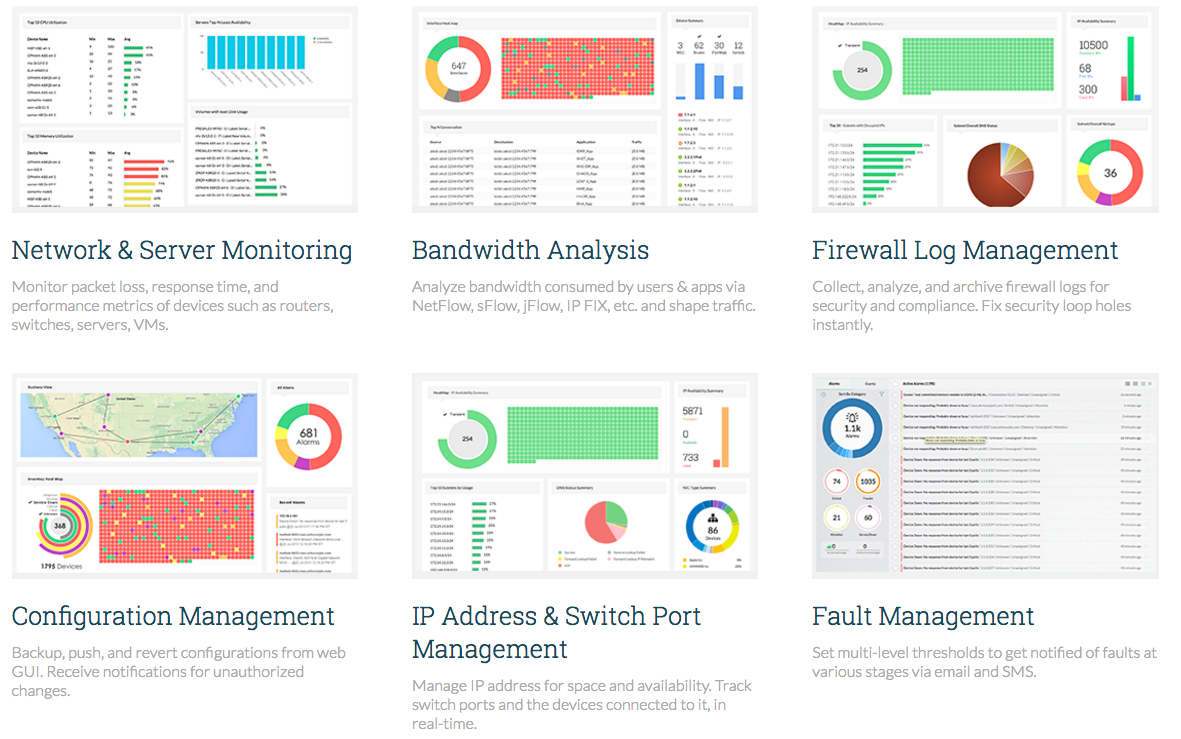 This bundle of seven ManageEngine tools provides full network monitoring and analysis capabilities. Installs on Windows Server and Linux.
