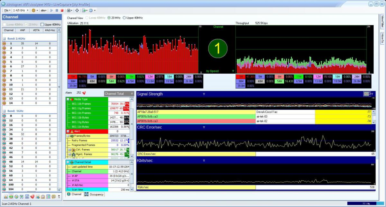 Wireless network monitor provides real-time accurate, independent and reliable Wi-Fi analysis of 802.11a/b/g/n and ac wireless networks, including 3 X 3 802.11ac wireless network analysis without missing any traffic . Highly portable wireless network analyzer that travels to the source of the wireless network troubleshooting problems enabling faster and accurate fault-finding without any AP downtime. Dedicated Wi-Fi network monitoring and troubleshooting software solution guaranteeing any wireless network fault detection as compared to “time-slicing monitoring functionality” built inside the wireless network infrastructure.